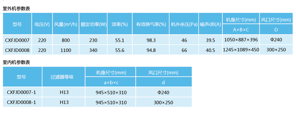 教室蓝全热交换除霾新风机CXFJD0007&CXFJD0008